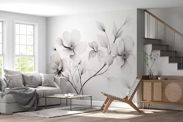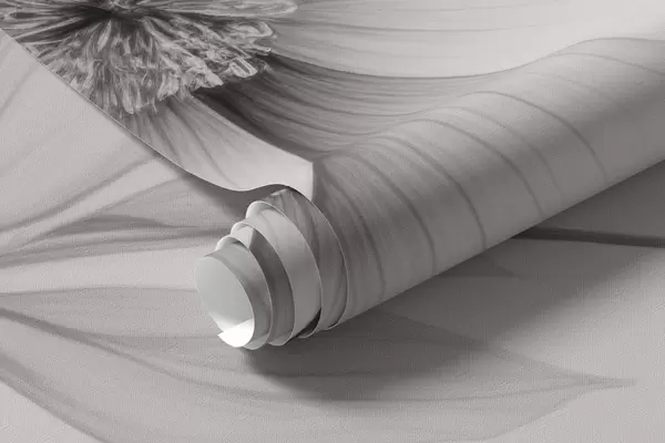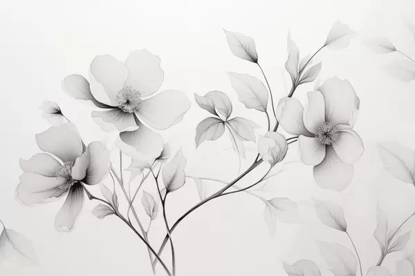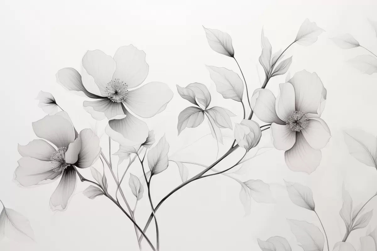 Fototapetes Melni un balti ziedi ar elegantām līnijām uz pelēka fona Nr. w09271