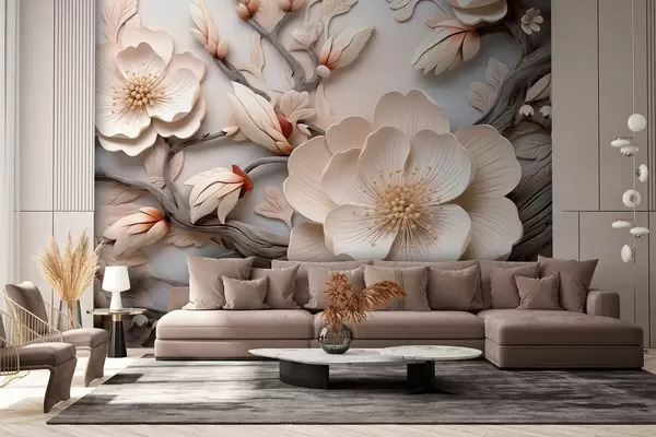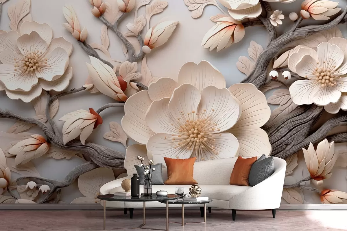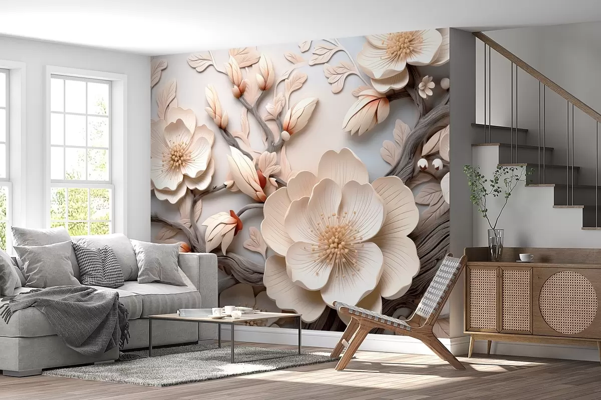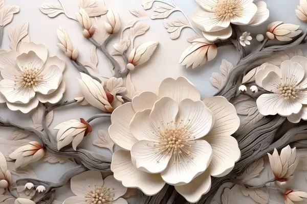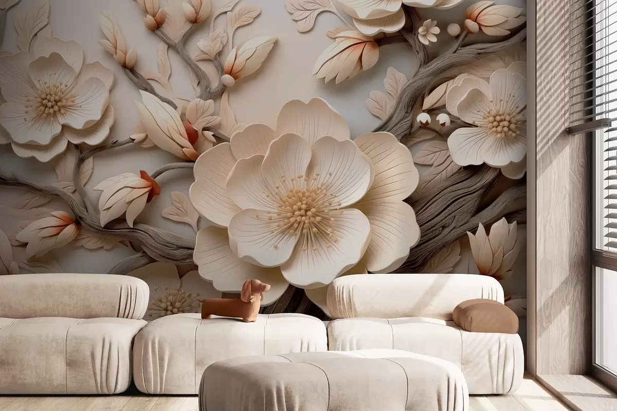Fototapetes Apjomīgi ziedi un zari gaišos toņos Nr. w09272
