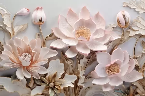 Fototapetes Apjomīgi rozā ziedi ar dzeltenām lapām Nr. w09277