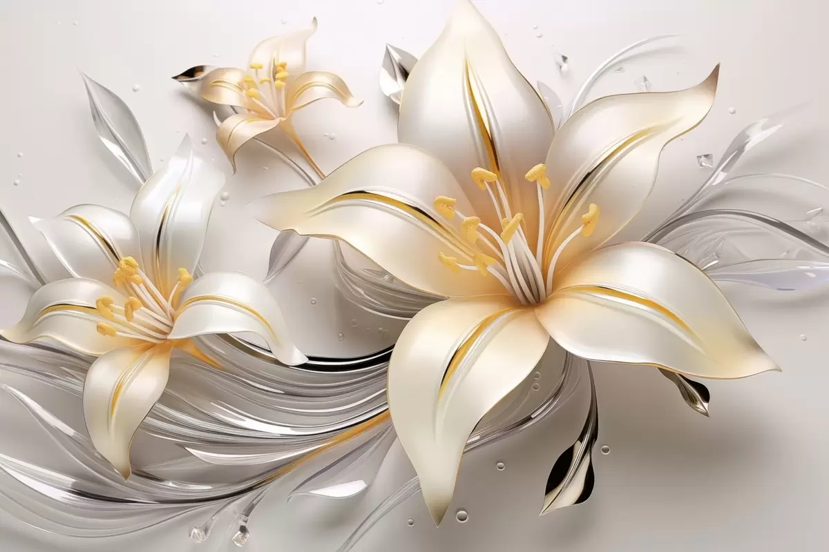 Fototapetes Dzeltenas lilijas ar 3D efektu uz gaiša fona Nr. w09278
