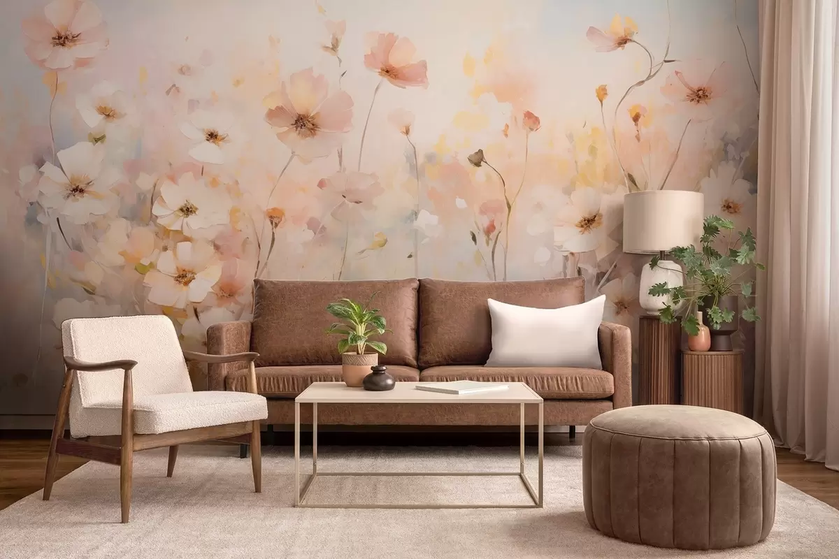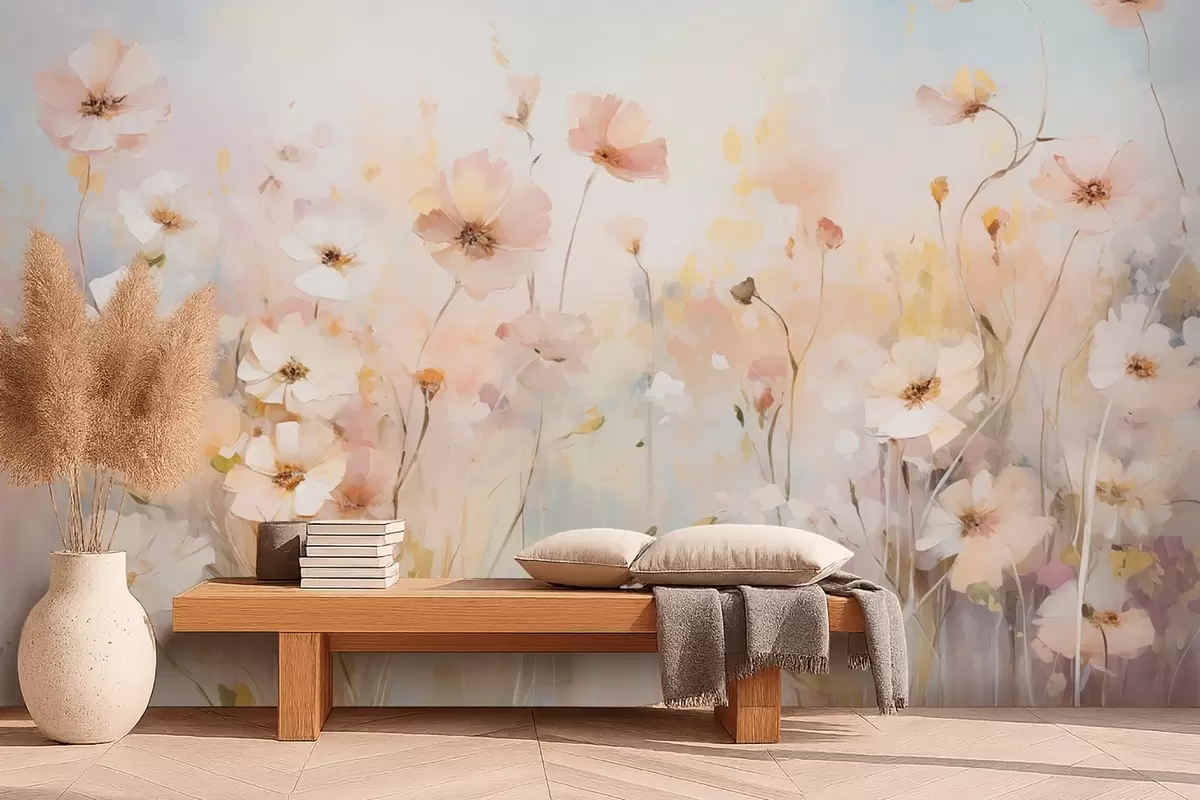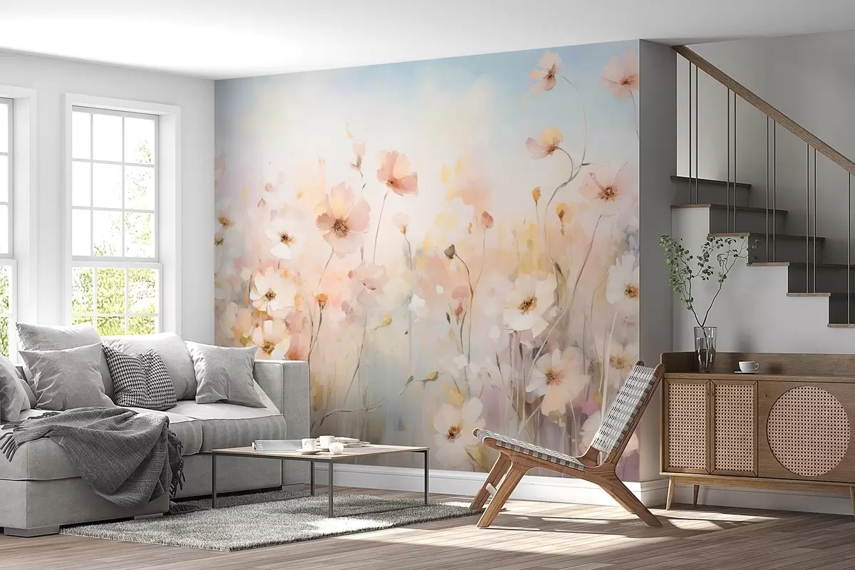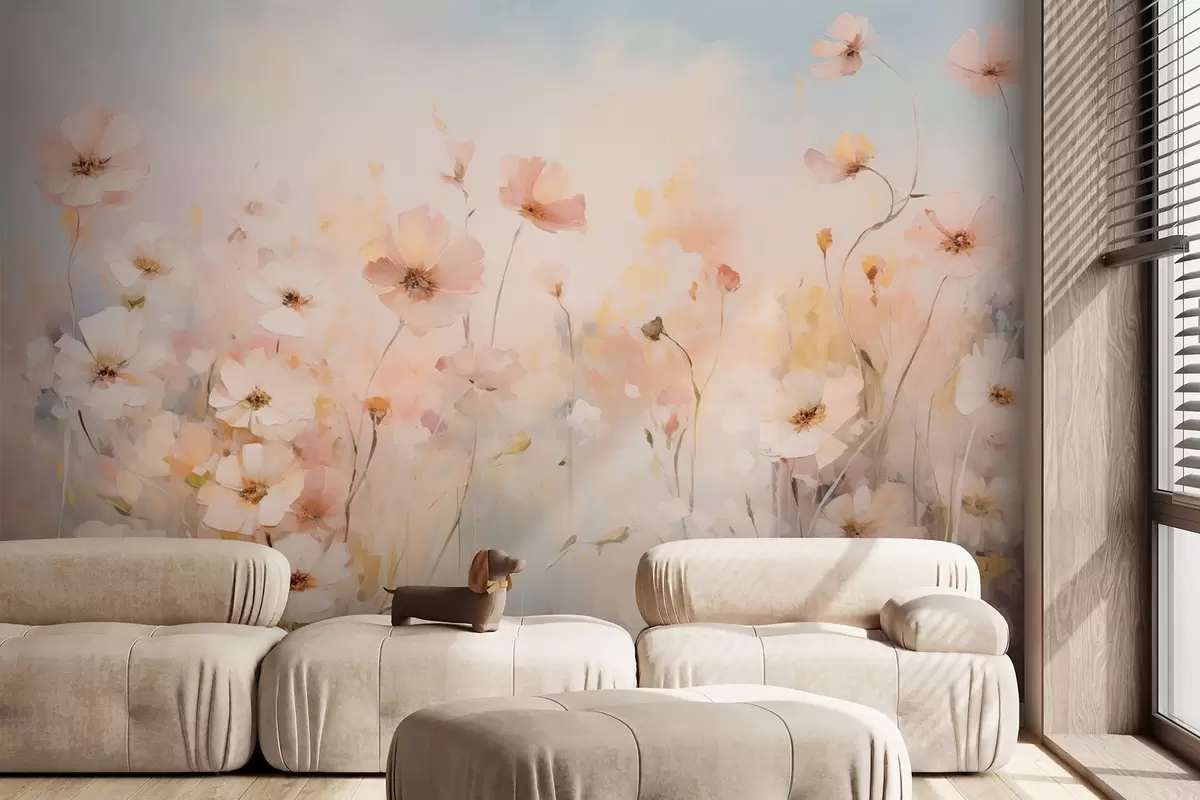 Fototapetes Savvaļas puķes pasteļtoņos akvareļu stilā Nr. w09280
