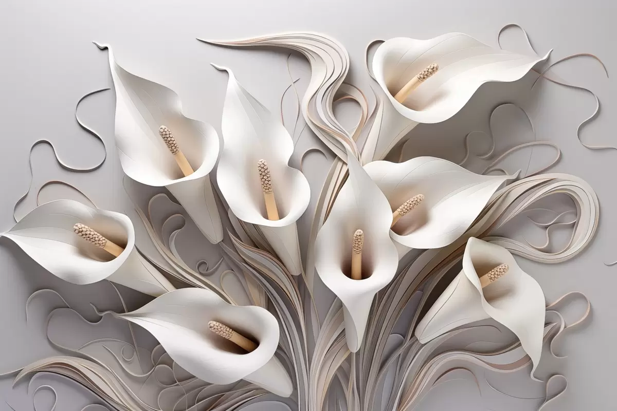 Fototapetes Krēmkrāsas toņu tilpuma kalla lilijas ar 3D efektu Nr. w09281