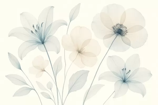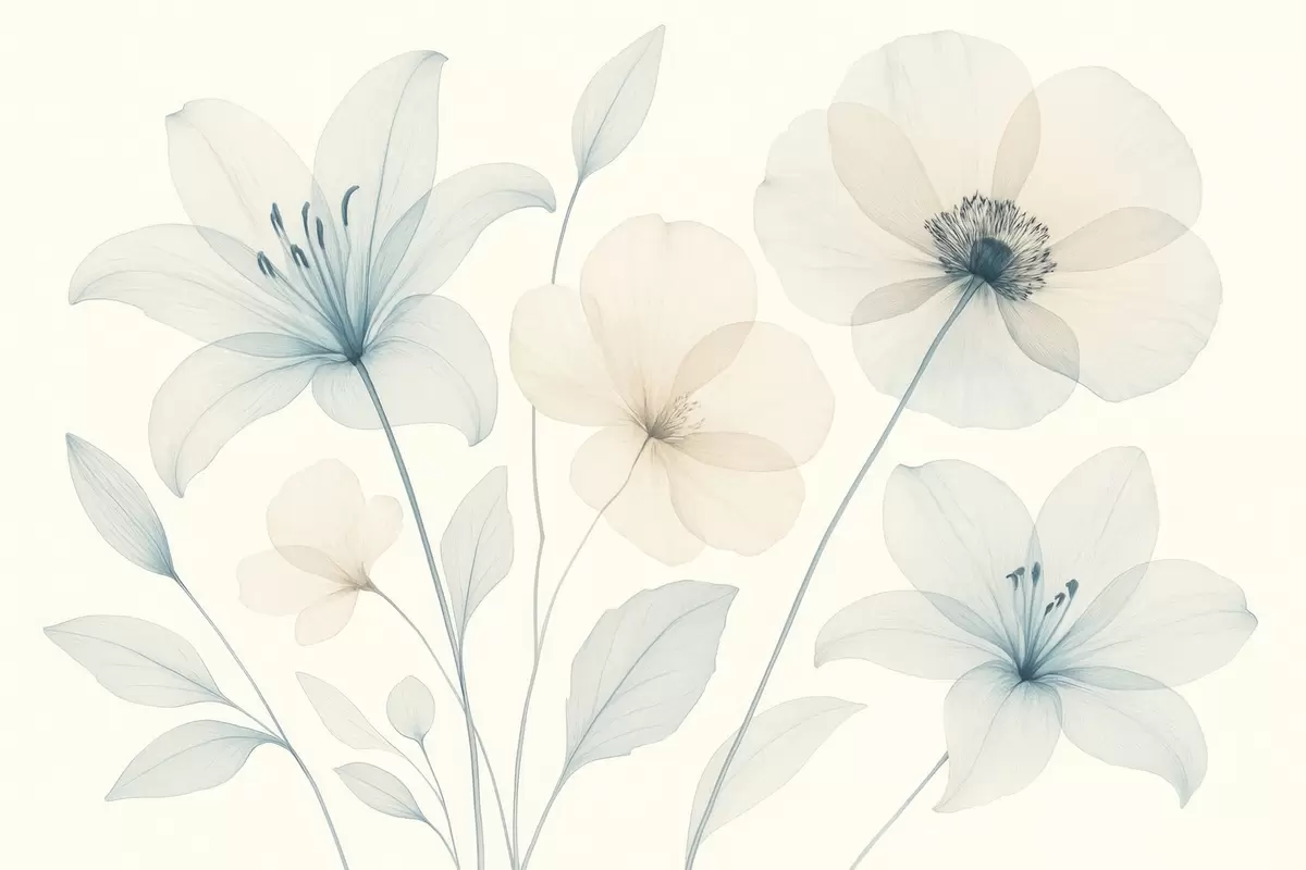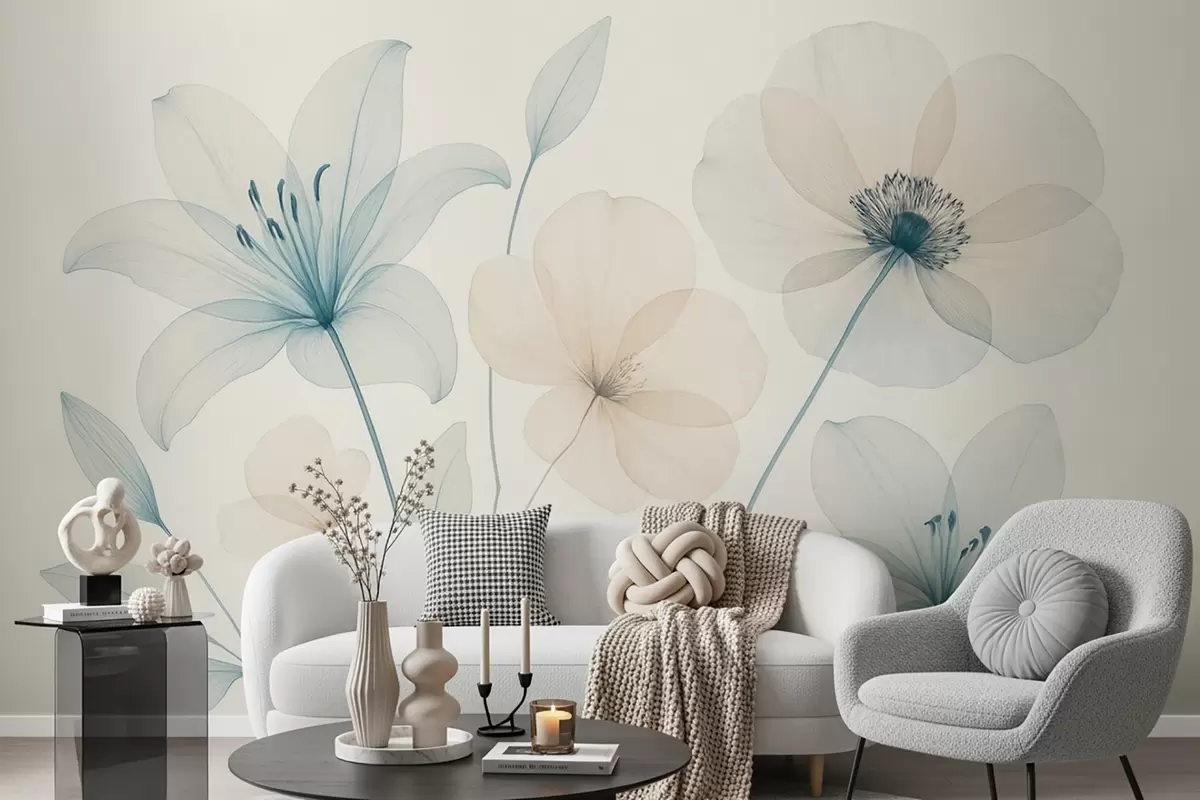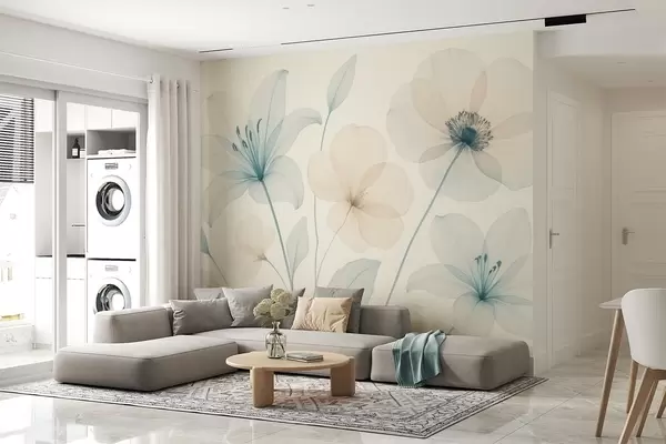 Fototapetes Maigi ziedi pasteļzilā un krēmkrāsas akvareļu stilā Nr. w09287