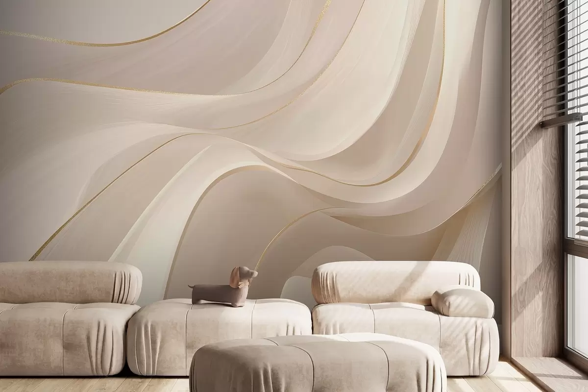 Fototapetes Plūstoši viļņi ar dzelteniem akcentiem krēmkrāsas gaismā Nr. w09303