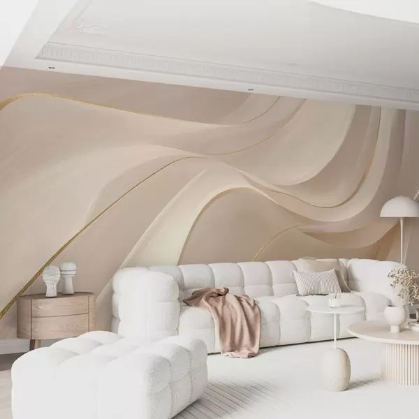 Fototapetes Plūstoši viļņi ar dzelteniem akcentiem krēmkrāsas gaismā Nr. w09303