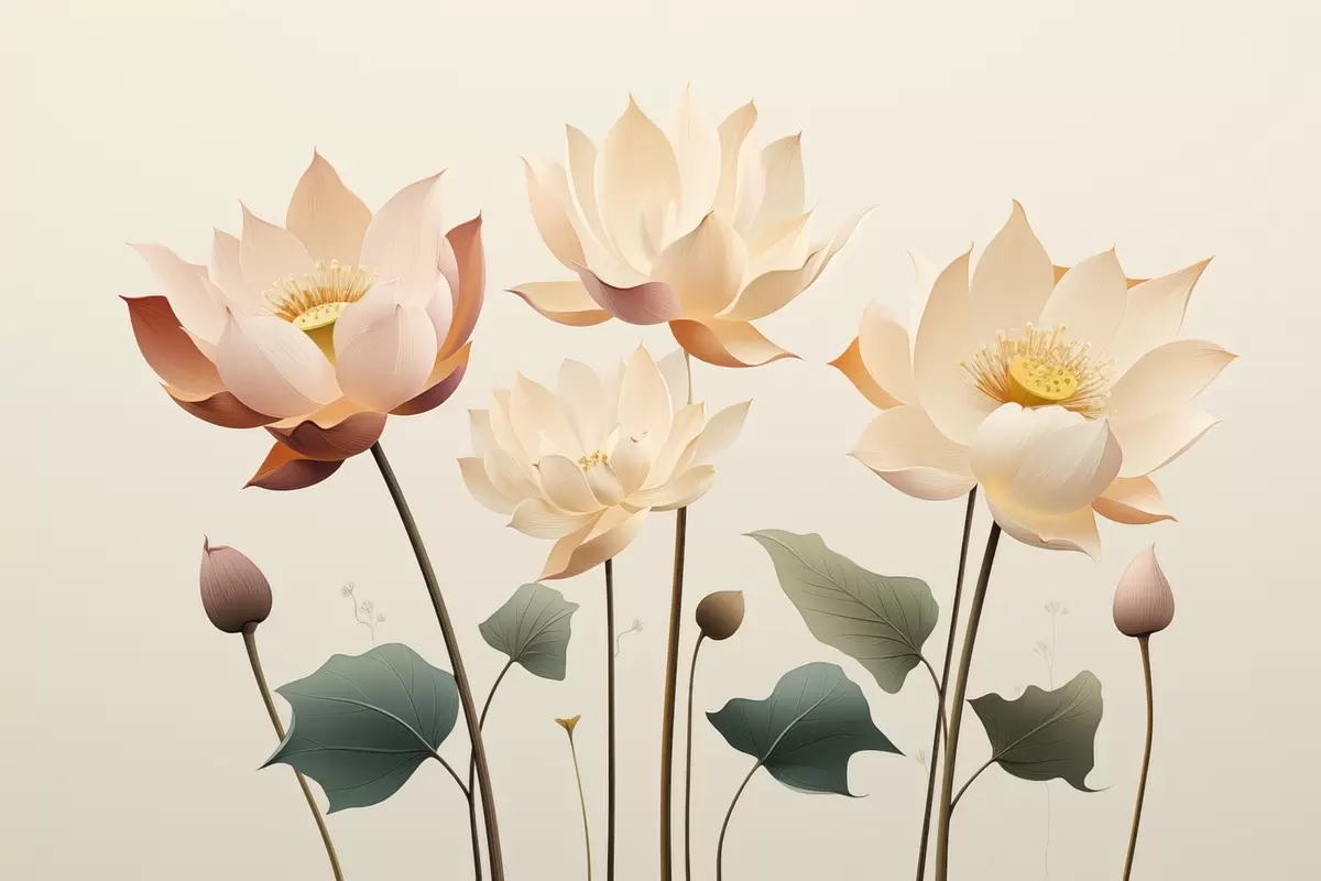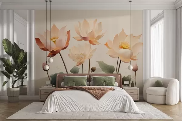 Fototapetes Eleganti lotosa ziedi maigā pasteļkrāsā Nr. w09306