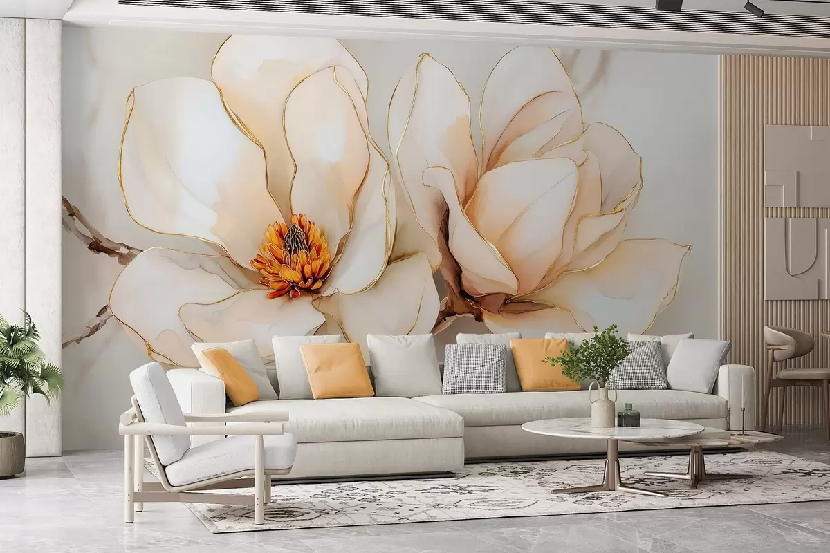 Fototapetes Lieli gaiši magnolijas ziedi ar mīkstām ziedlapiņām Nr. w09308