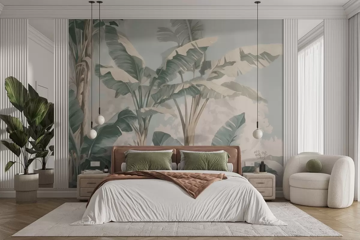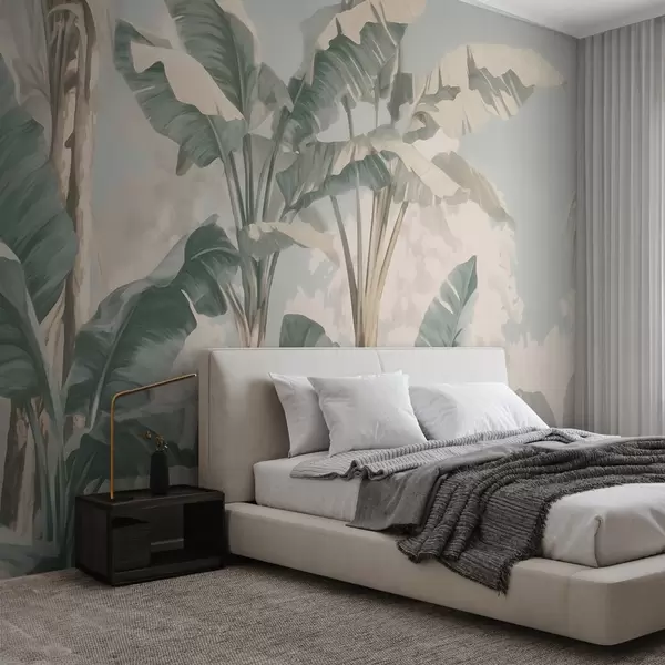 Fototapetes Tropu banānu lapas maigās pasteļtoņos Nr. w09311