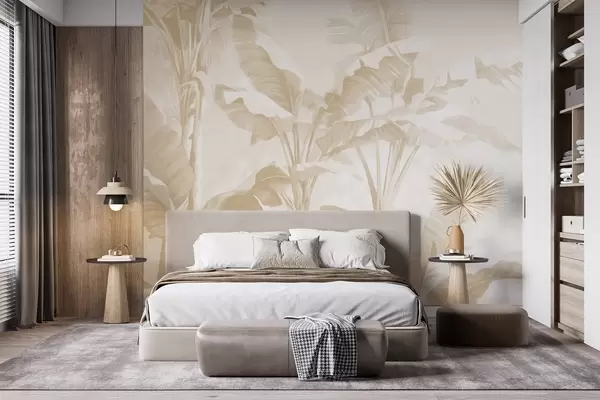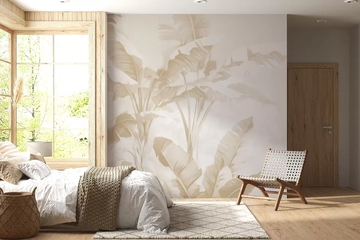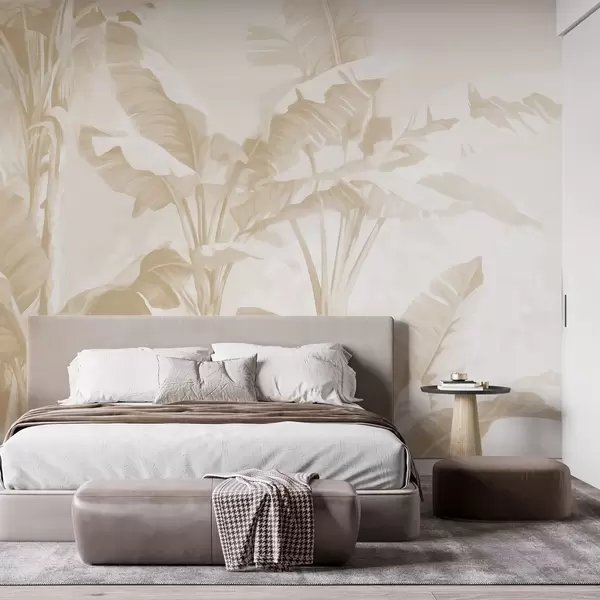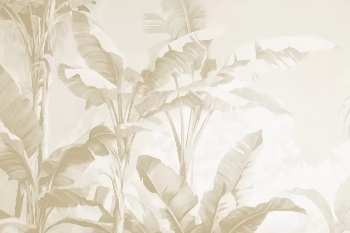 Fototapetes Tropu banānu lapas maigās smilškrāsas toņos Nr. w09311v2