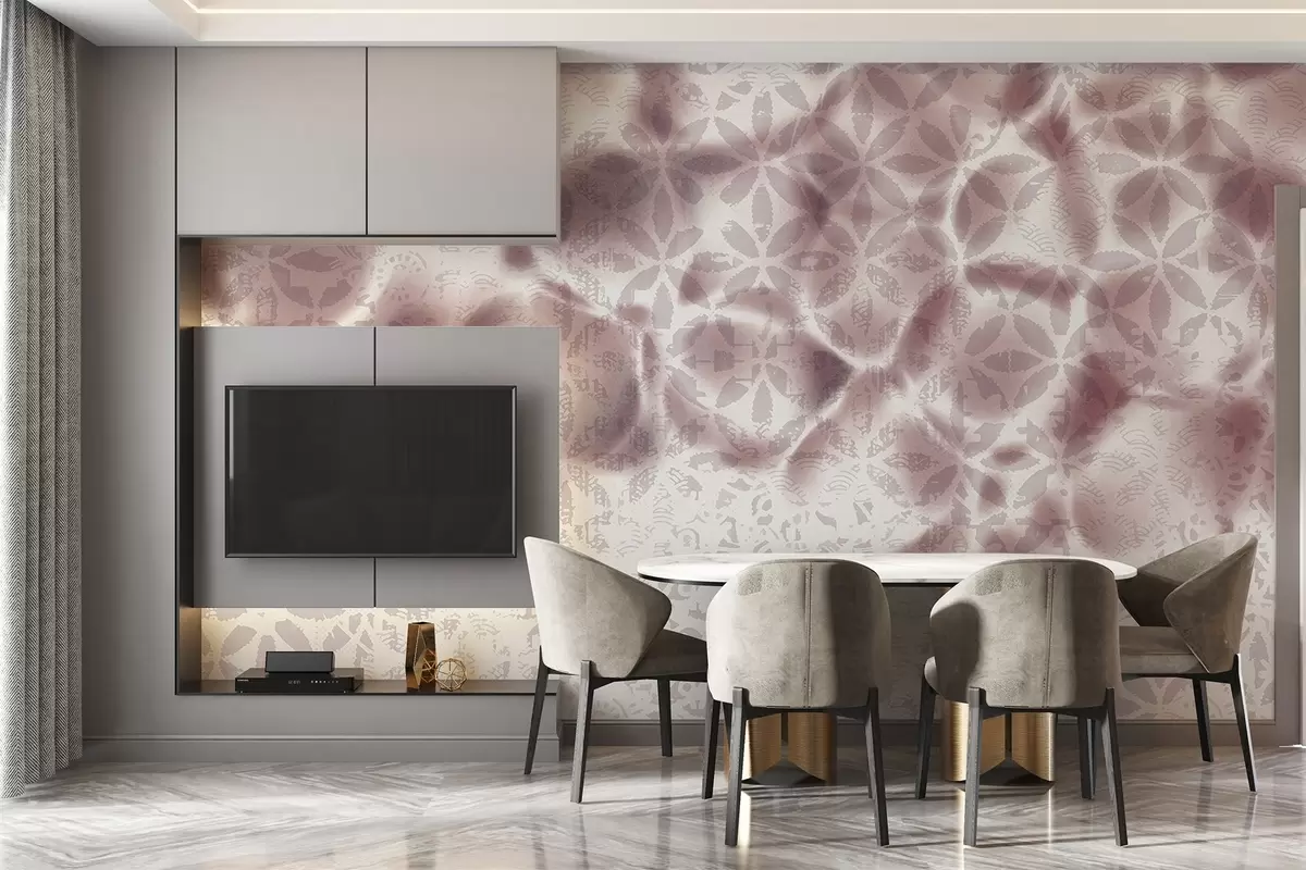 Fototapetes Abstraktā tekstūra ar bordo ziedu apdruku, izbalējušu un izplūdušu efektu, kas rada maigu un sapņainu atmosfēru Nr. w09322v1