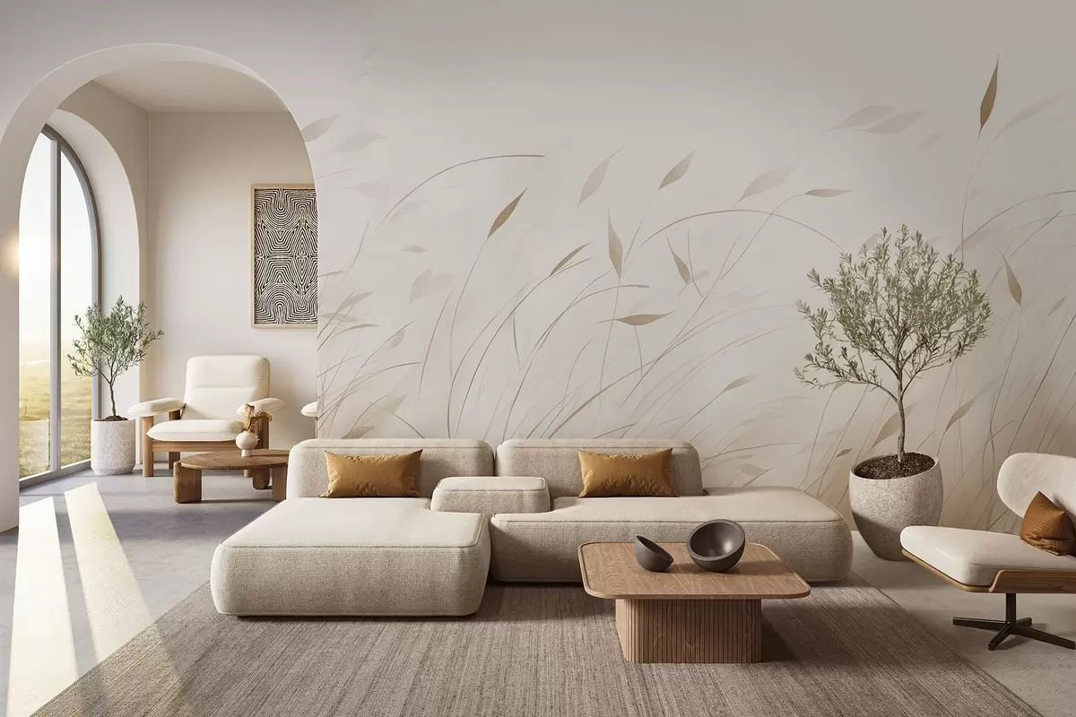 Fototapetes Zāle vējā akvareļa stilā smilškrāsas toņos Nr. w09331v1