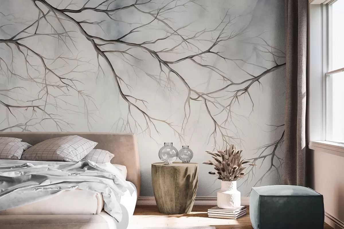 Fototapetes Koku zari ar akvareļa tekstūras efektu , sarežģītas detaļas, maiga krāsu palete, uz gaiša fona Nr. w09337