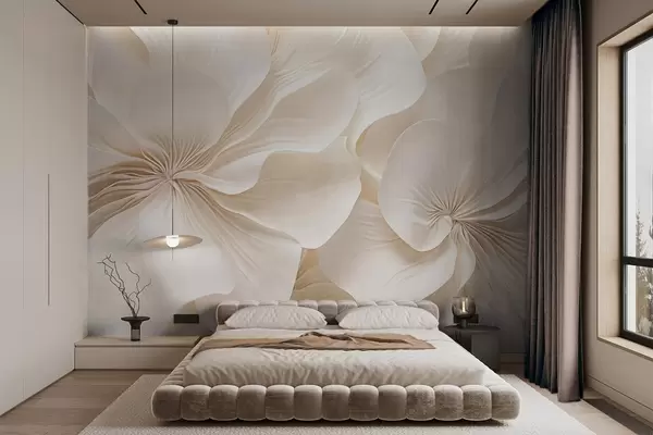 Fototapetes Krēmkrāsas tekstūras ziedu tuvplāns ar maigiem, plūstošiem ziedlapiņām, kas veido maigu, elegantu un teksturētu ziedu kompozīciju Nr. w09346