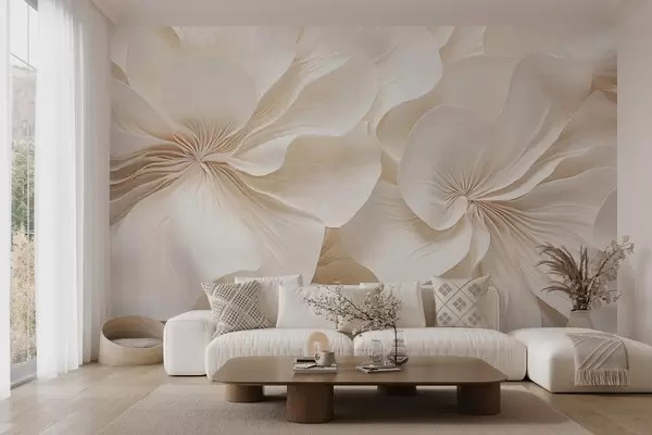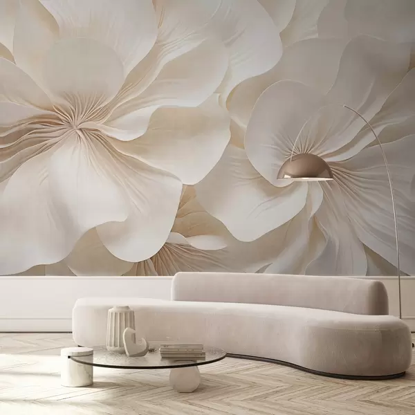 Fototapetes Krēmkrāsas tekstūras ziedu tuvplāns ar maigiem, plūstošiem ziedlapiņām, kas veido maigu, elegantu un teksturētu ziedu kompozīciju Nr. w09346
