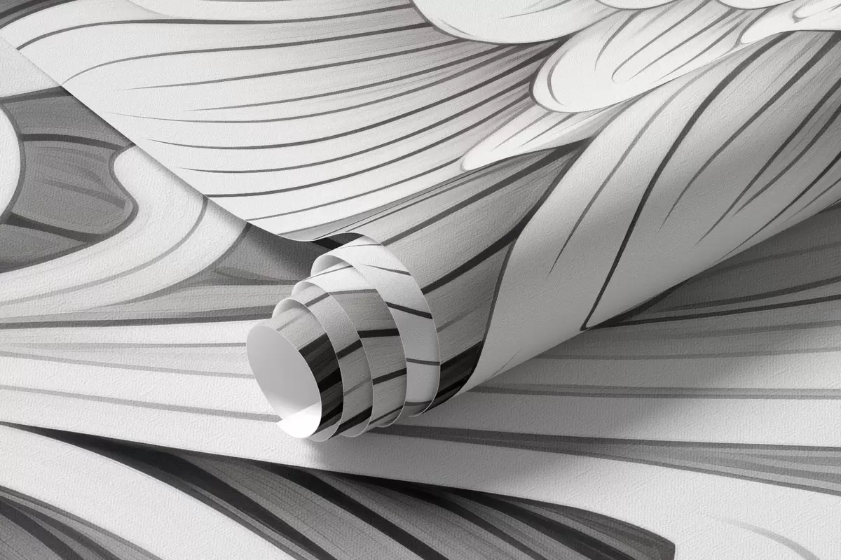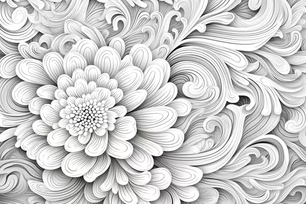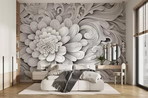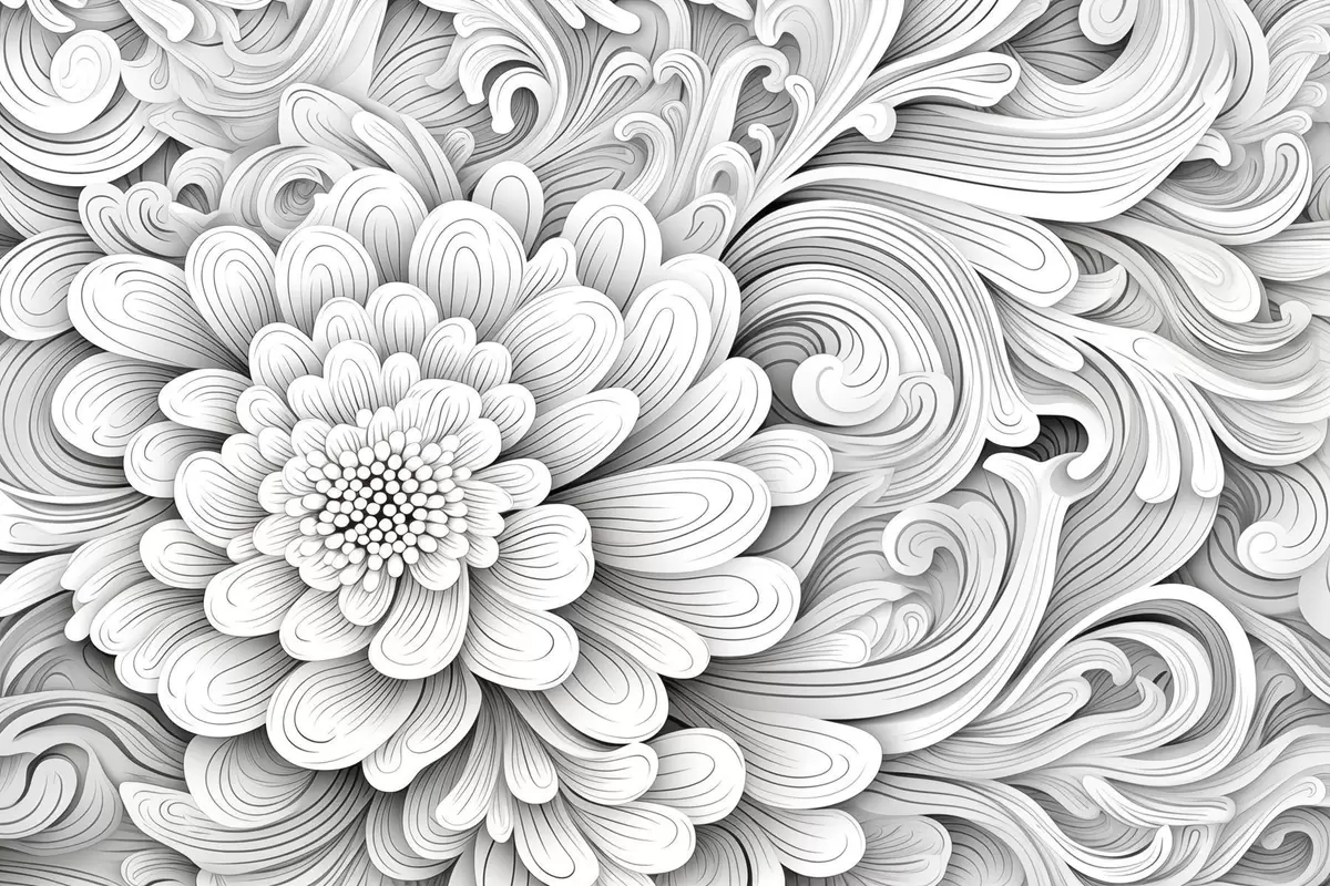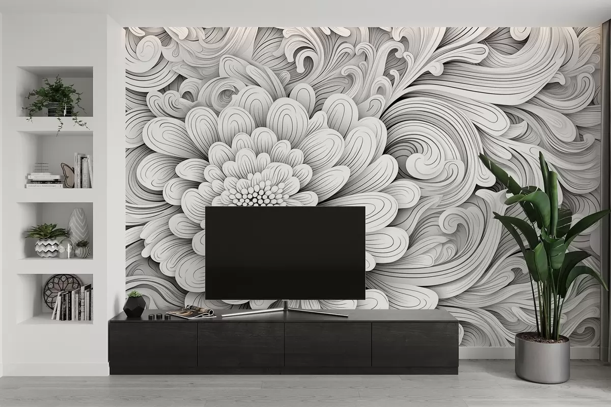 Fototapetes Dekoratīvs melnbalts raksts zieda un virpuļu formā Nr. w09355