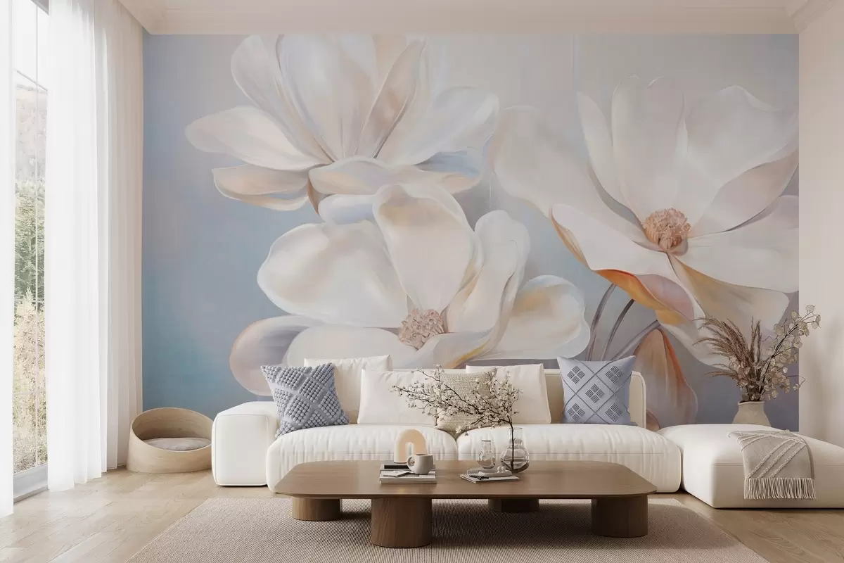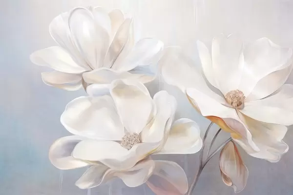 Fototapetes Baltas fantāzijas magnolijas ziedi ar delikātiem teksturētiem ziedlapiem, maigs, abstrakts fons Nr. w09373