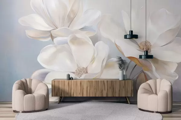 Fototapetes Baltas fantāzijas magnolijas ziedi ar delikātiem teksturētiem ziedlapiem, maigs, abstrakts fons Nr. w09373