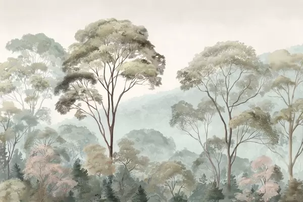 Fototapetes Miglas rīts mežā akvareļu stilā Nr. w09405