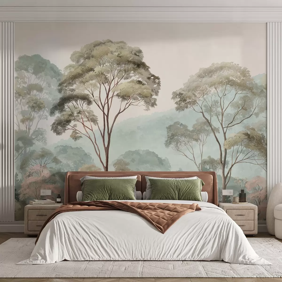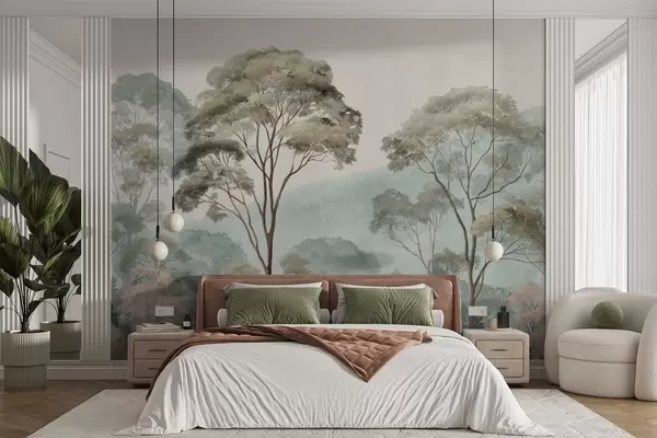 Fototapetes Miglas rīts mežā akvareļu stilā Nr. w09405
