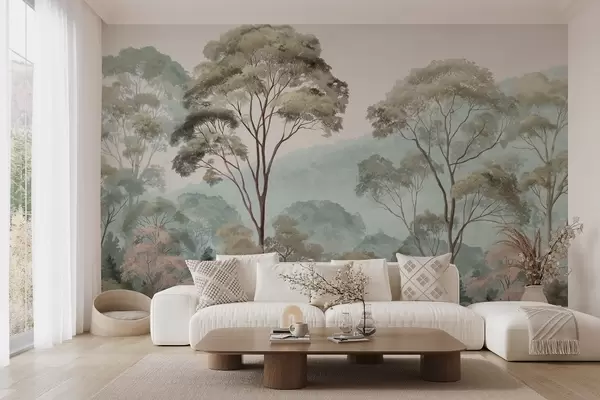 Fototapetes Miglas rīts mežā akvareļu stilā Nr. w09405