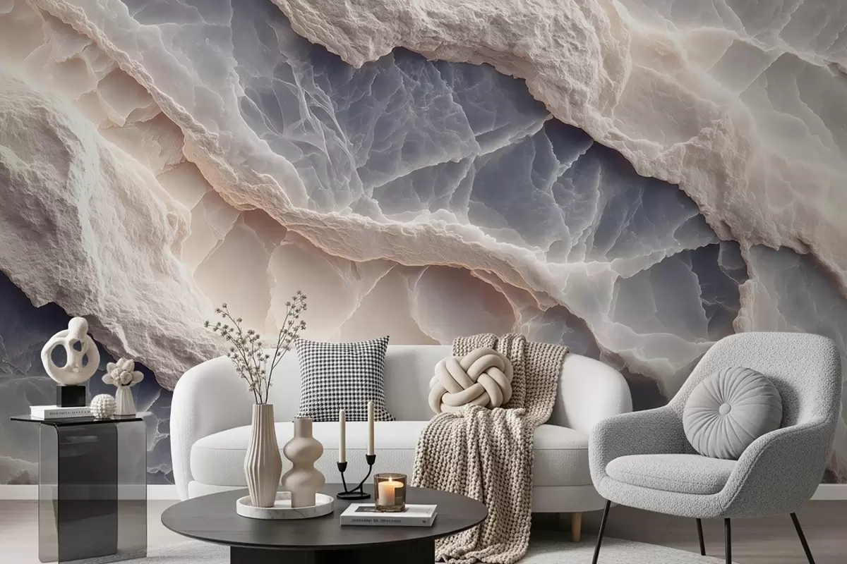 Fototapetes Eleganta abstrakcija marmora slāņu un minerālu stilā zilā-bēšā krāsā Nr. w09408