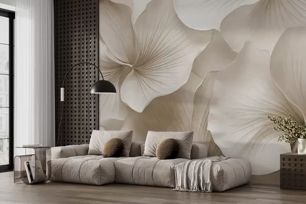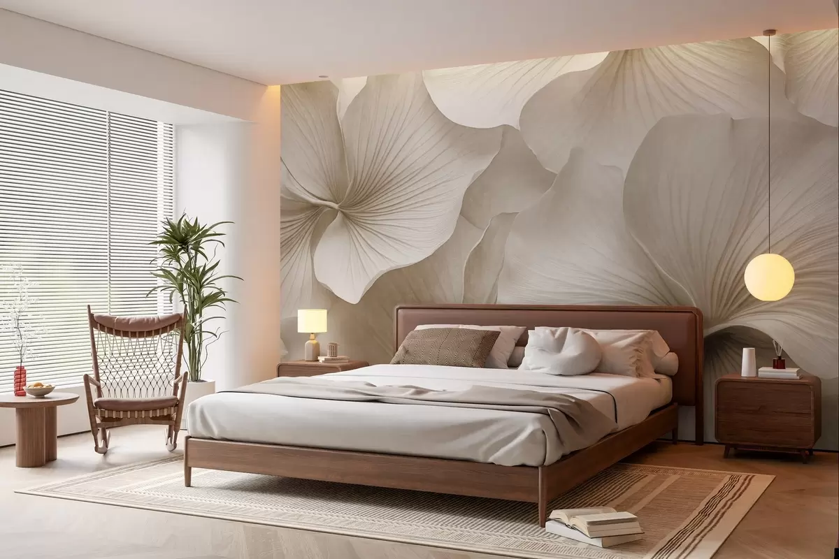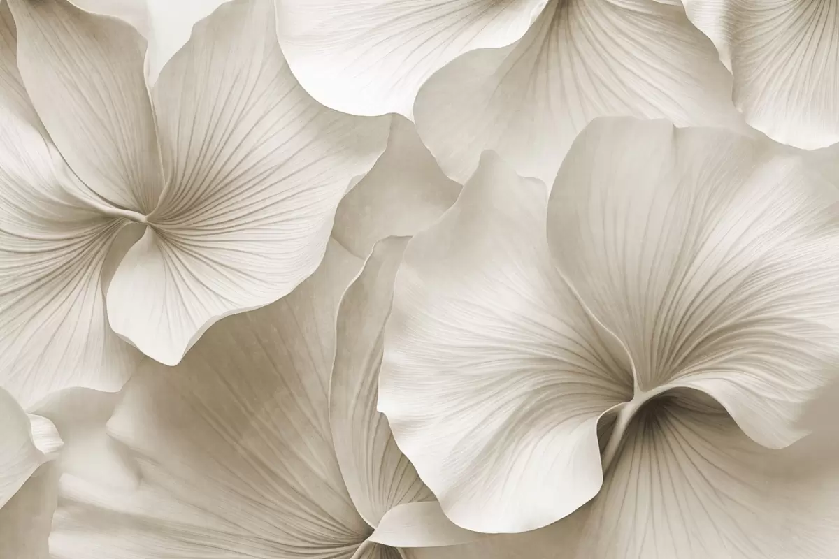 Fototapetes Baltas un smilškrāsas gingko lapas, mīksta tekstūra, abstrakts ziedu fons, minimālisma moderns stils Nr. w09421v1