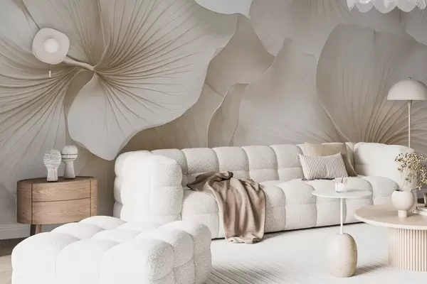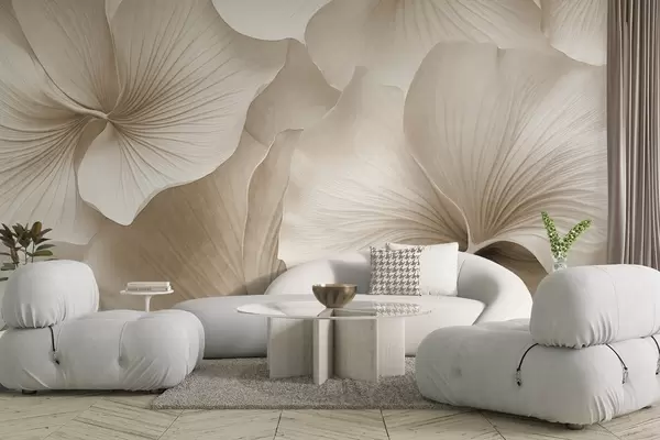 Fototapetes Baltas un smilškrāsas gingko lapas, mīksta tekstūra, abstrakts ziedu fons, minimālisma moderns stils Nr. w09421v1