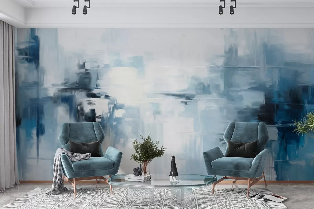 Fototapetes Abstrakta faktūru ainavas glezna ar ziliem un baltiem triepieniem, modernā stilā Nr. w09422