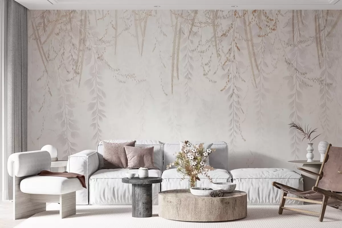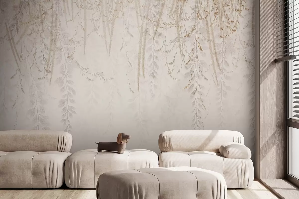 Fototapetes Gaiši karājošās lapas un zari smilškrāsas toņos Nr. w09433