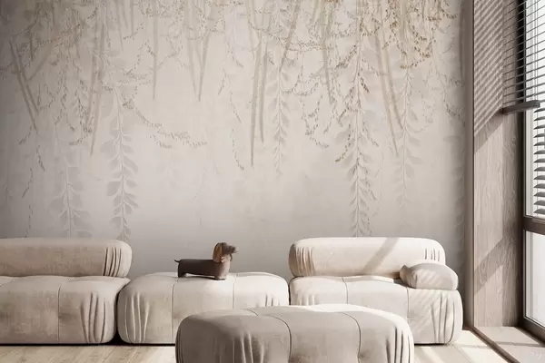 Fototapetes Gaiši karājošās lapas un zari smilškrāsas toņos Nr. w09433