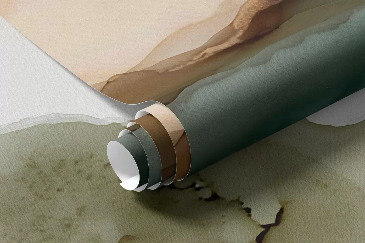 Fototapetes Abstrakts ainavas attēls alkohola tintes stilā — kalni un koki pasteļtoņos w09457