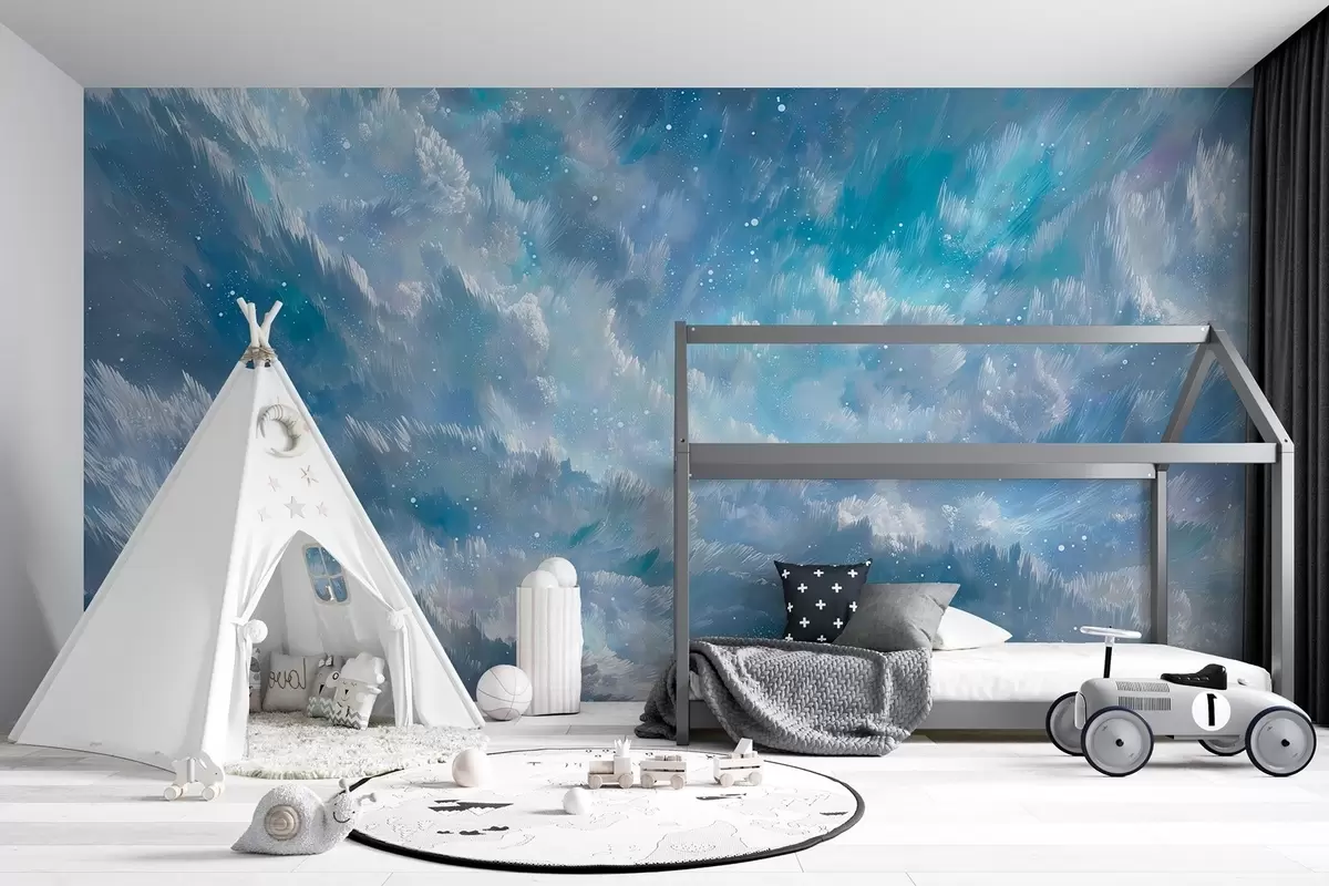 Fototapetes Debesu abstrakti mākoņi vēsā pasteļu krāsu gamā Nr. w09459