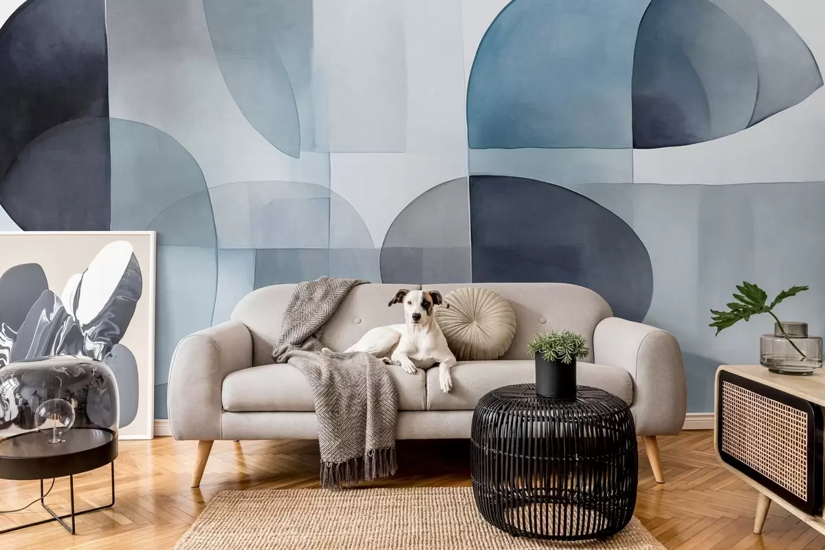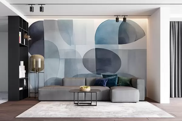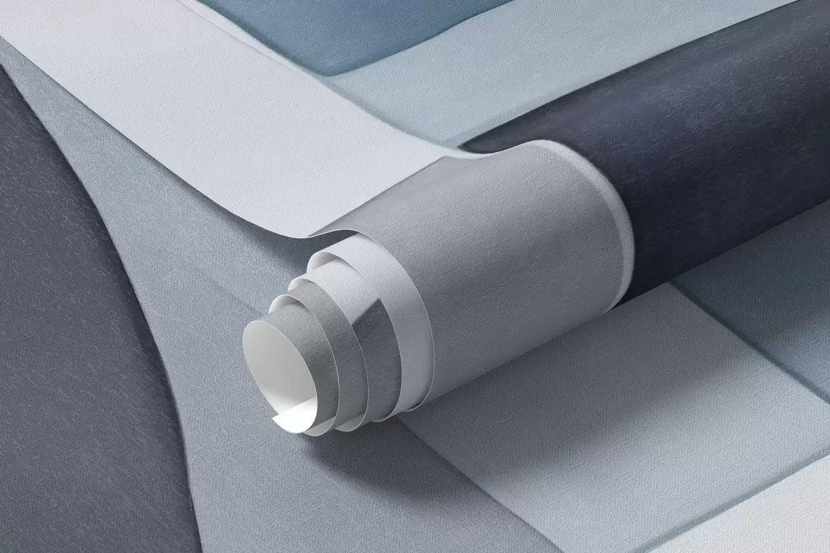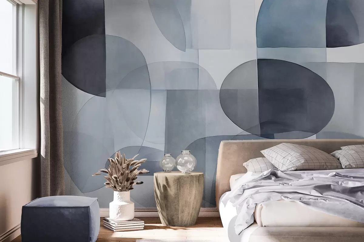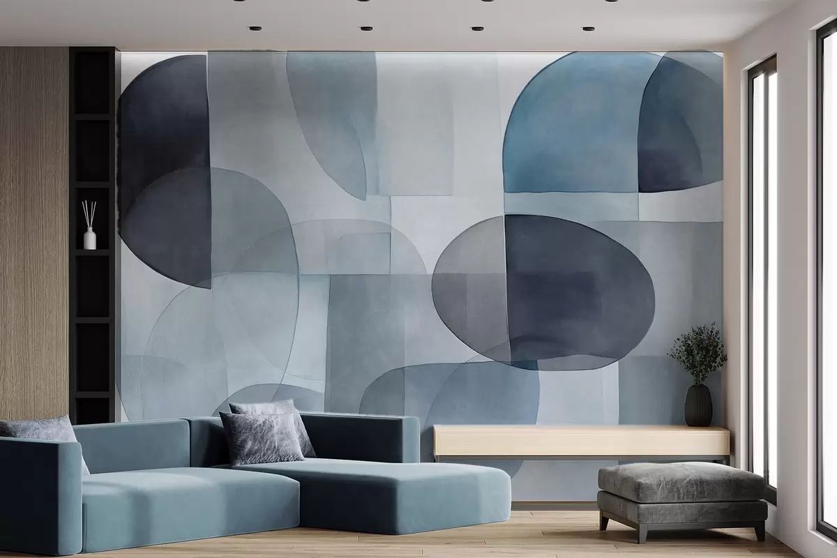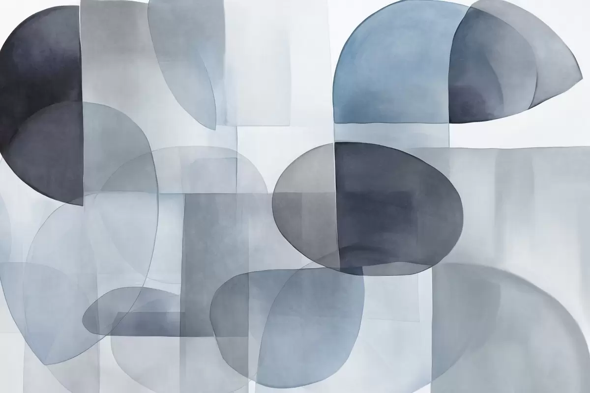 Fototapetes Abstraktas teksturētas formas pelēkā un zilā toņos, klusināti toņi, minimālistiska kompozīcija, neitrāls fons Nr. w09467v1