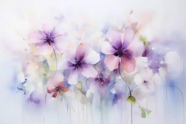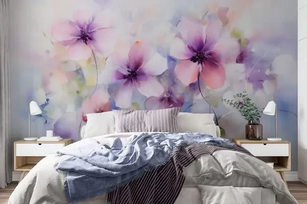 Fototapetes Pavasara akvareļu ziedi rozā un violetos toņos Nr. w09502