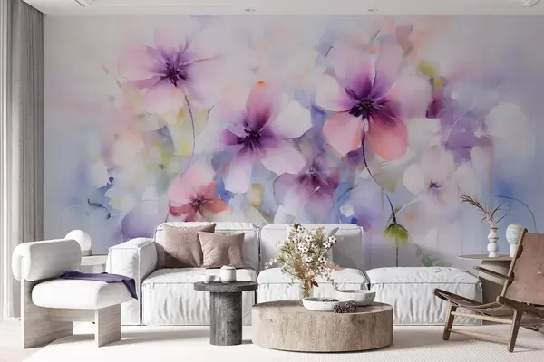 Fototapetes Pavasara akvareļu ziedi rozā un violetos toņos Nr. w09502