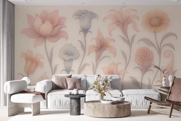 Fototapetes Maiga ziedu kompozīcija pasteļtoņos Nr. w09503