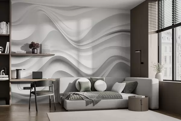 Fototapetes Melnbaltā abstrakta 3D kompozīcija ar gludām viļņiem Nr. w09506