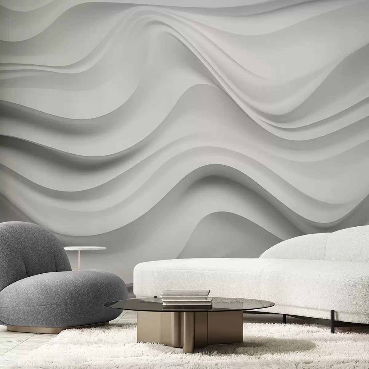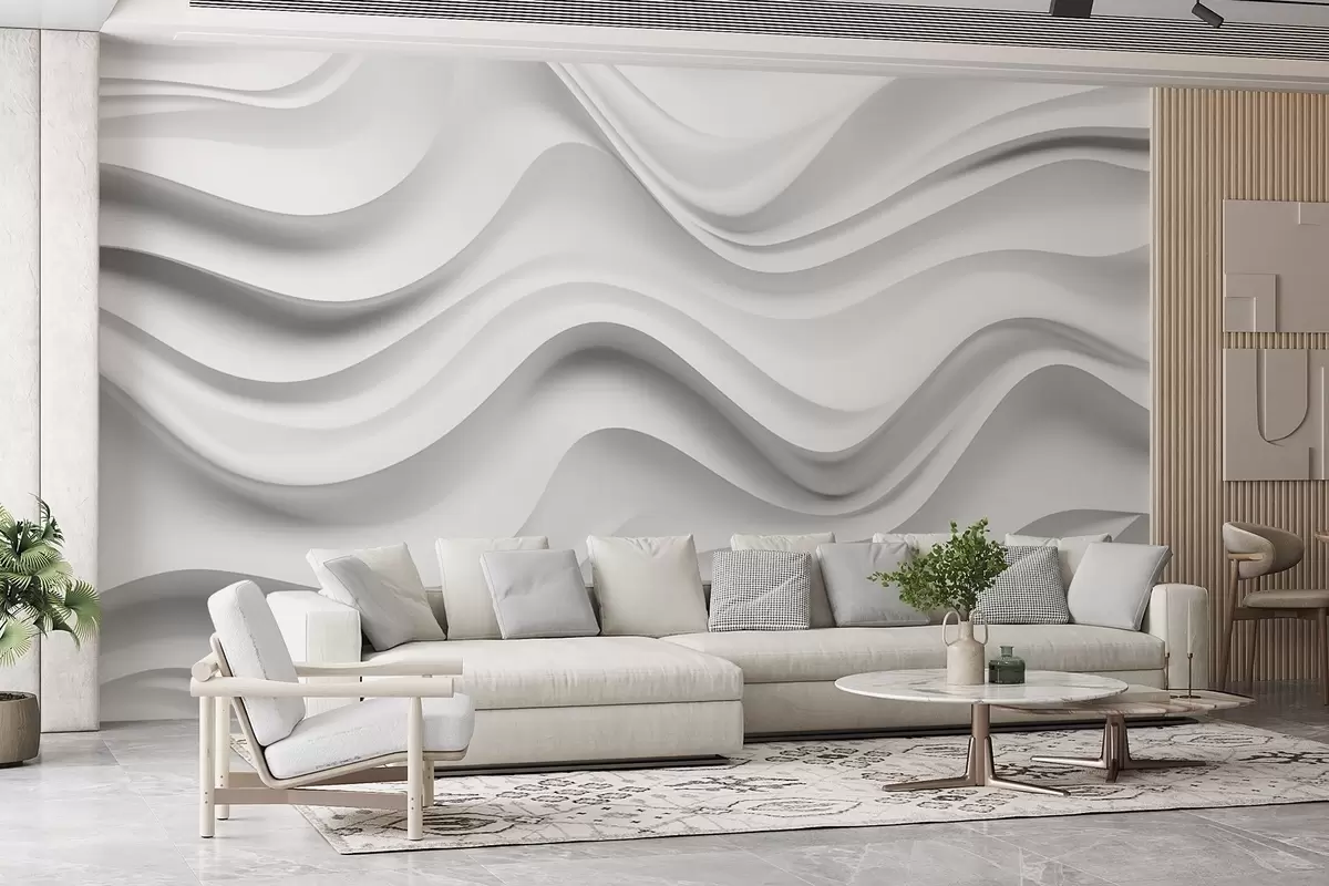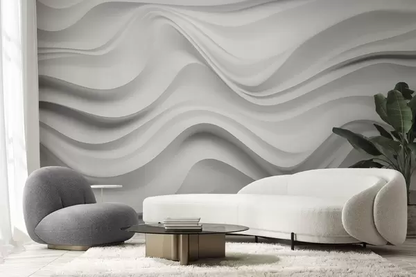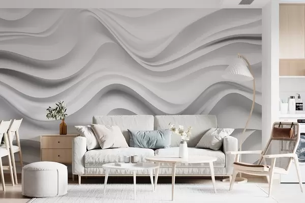 Fototapetes Melnbaltā abstrakta 3D kompozīcija ar gludām viļņiem Nr. w09506
