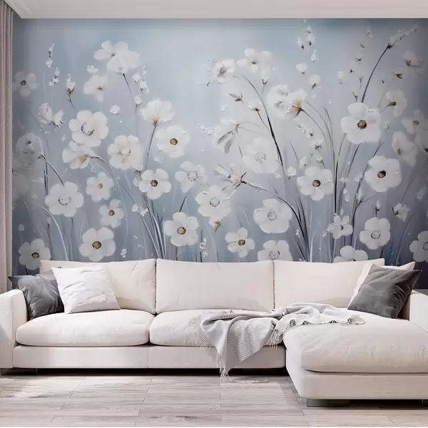 Fototapetes Baltas puķes pret zilu debesi eļļas gleznas stilā Nr. w09516