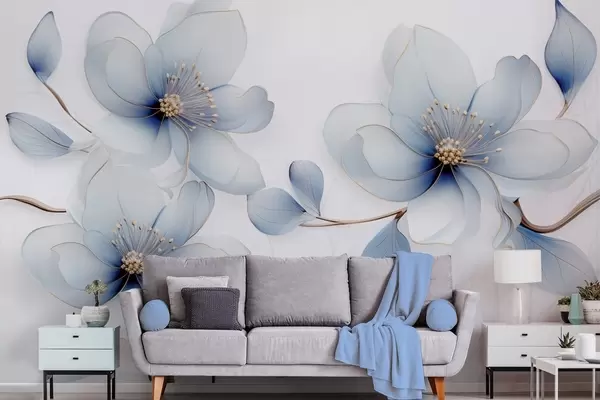 Fototapetes Elegants magnolijas ziedu kompozīcija zilos toņos Nr. w09520
