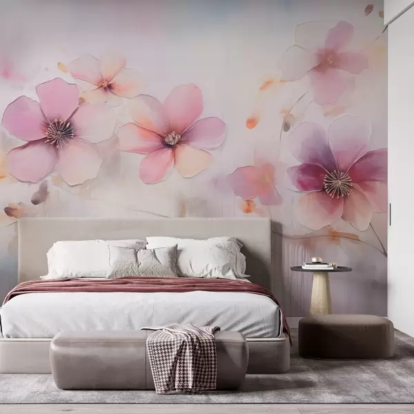 Fototapetes Zars ar rozā ziediem akvareļa stilā Nr. w09522