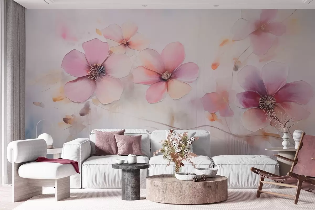 Fototapetes Zars ar rozā ziediem akvareļa stilā Nr. w09522