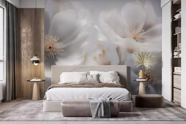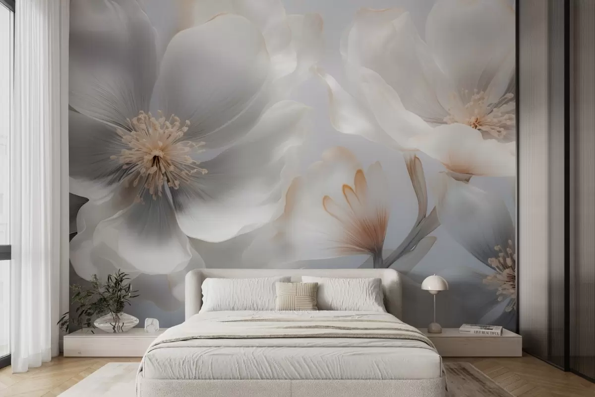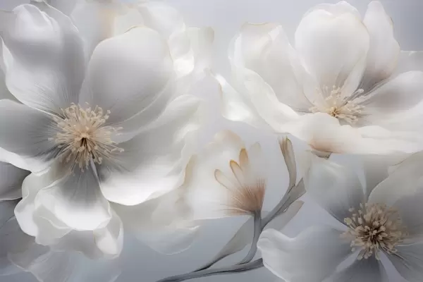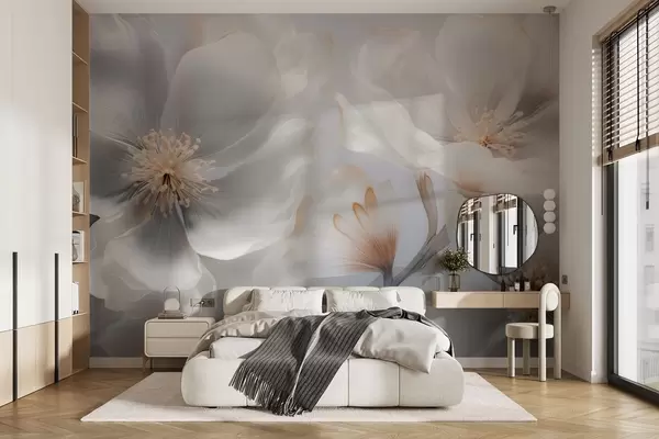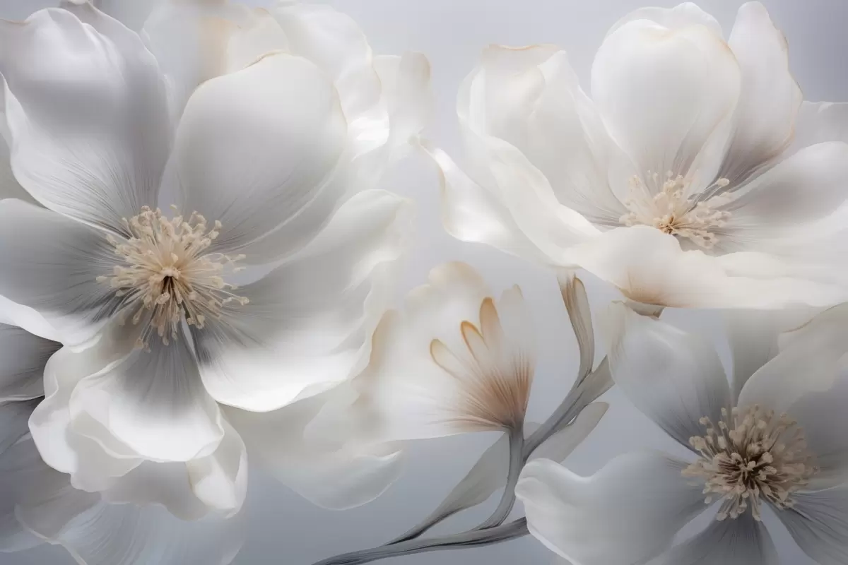 Fototapetes Perlamutra ziedi smilšpelēkā un piena krēmkrāsā Nr. w09527