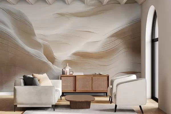 Fototapetes Smilšakmens kanjona teksturētas sienas ar gludām, plūstošām līknēm un faktūrām, dabiskais skaistums, minimālisms Nr. w09533