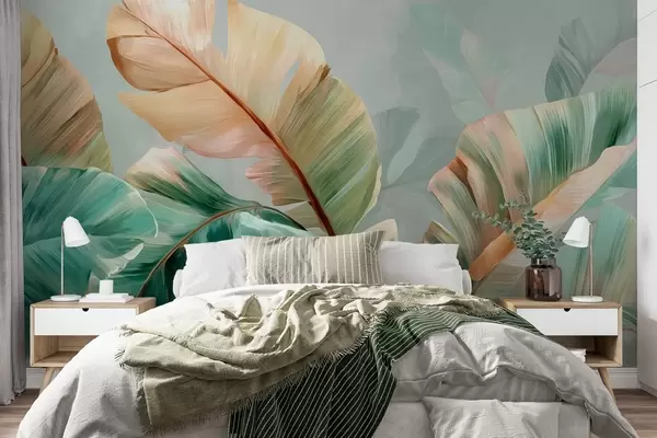 Fototapetes Maigi tropu banānu lapas pasteļtoņos dzeltenā un zaļā krāsā Nr. w09581