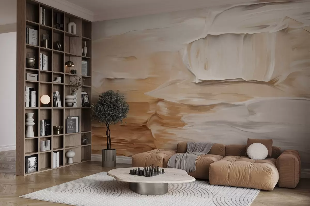 Fototapetes Abstraktas faktūras otas triepienu imitācija siltos zemes toņos – smilškrāsā, krēmkrāsā un brūnā, modernā māksla Nr. w09588