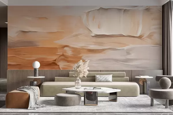 Fototapetes Abstraktas faktūras otas triepienu imitācija siltos zemes toņos – smilškrāsā, krēmkrāsā un brūnā, modernā māksla Nr. w09588
