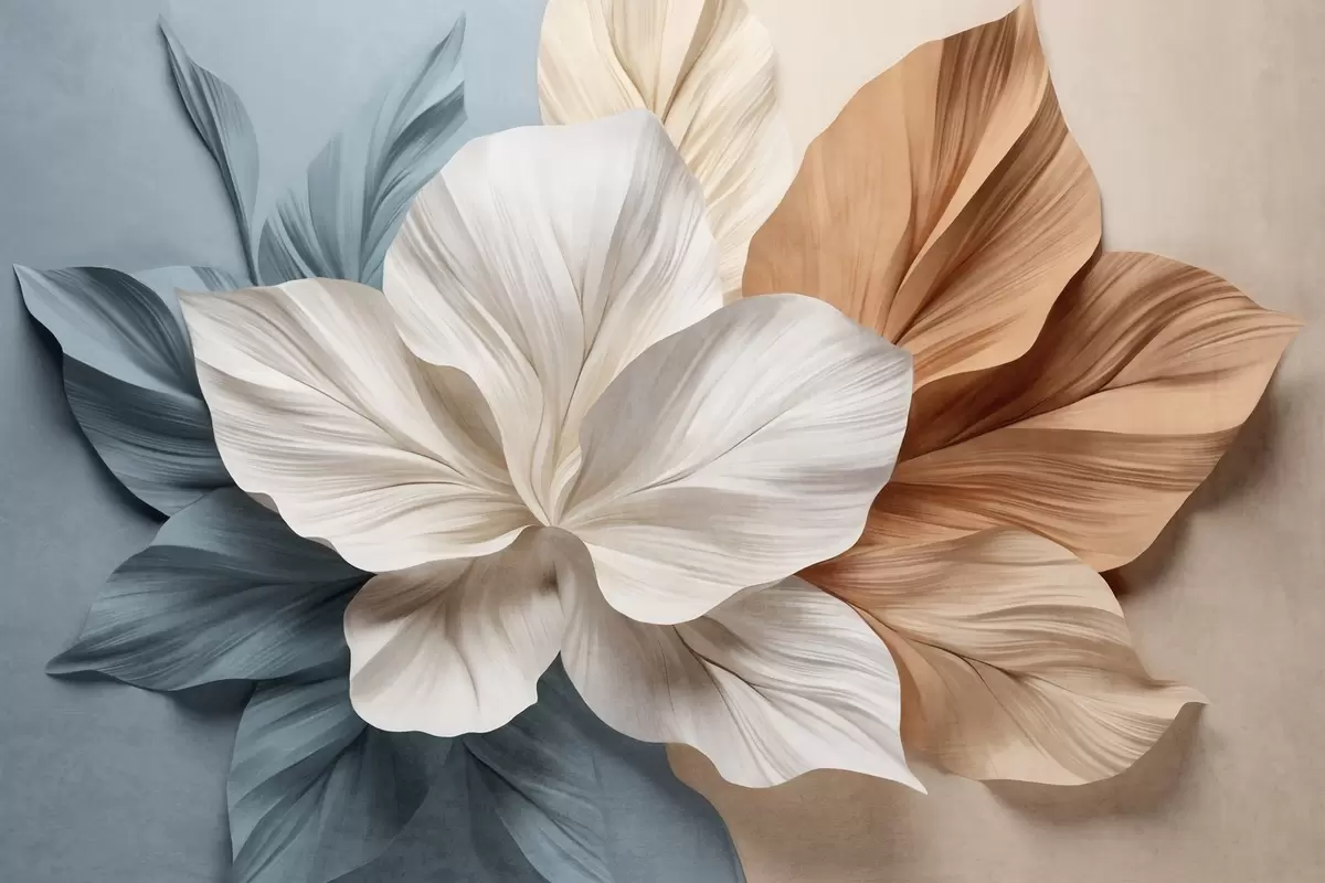 Fototapetes Abstrakta daudzlapu zieda ar teksturētiem lapām persiku un zila toņos, maigs fons Nr. w09604