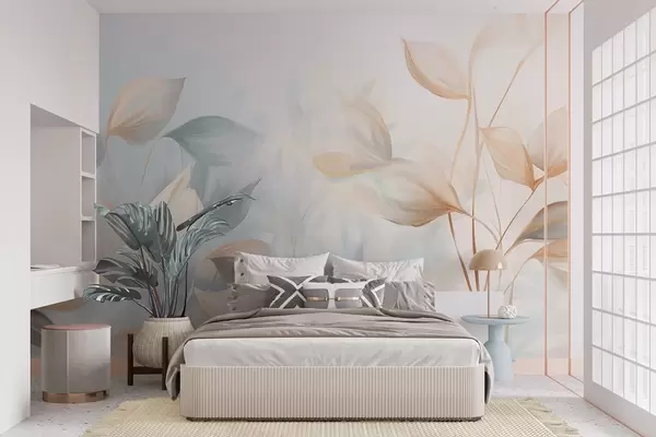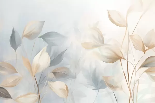Fototapetes Mīksti, delikāti, caurspīdīgi lapas klusinātos toņos – smilškrāsā, persiku un gaiši zilā krāsā, teksturēti pasteļtoņos. Nr. w09607