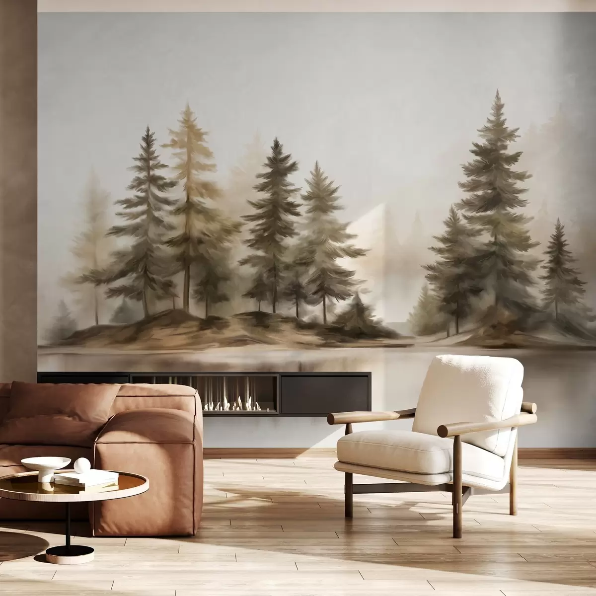 Fototapetes Teksturēts miglains mežs ar augstām priedēm, imitējot gleznu Nr. w09610